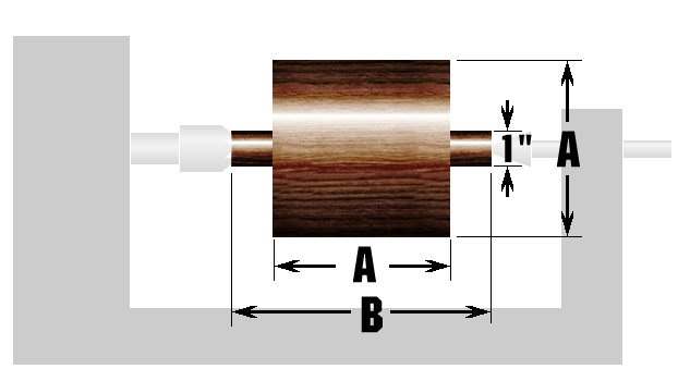 by 1" Diameter dowels 1.5" (1 1/2") long on the dead center side and 2.25" (2 1/4") long