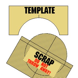 lathe off, use the "scrap" piece of template we cut earlier and place it in this depression.