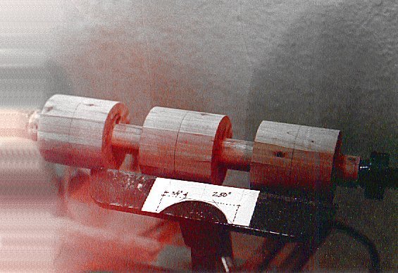 I began cutting into the cylinder with the parting tool , and stripping away the wood from