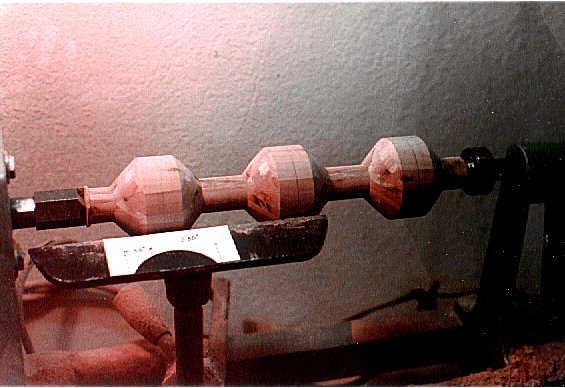 cut from the bulk of our remaining blank. Cut it down as far as possible with the lathe,